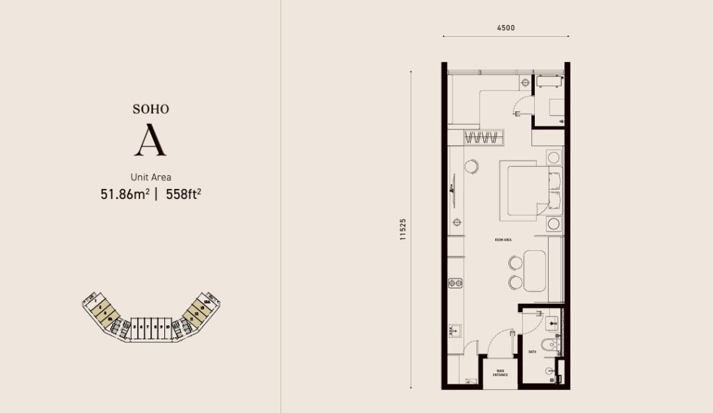 Type A : 558 sq ft