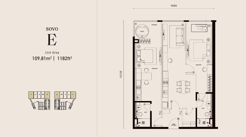 Type E : 1,182 sq ft