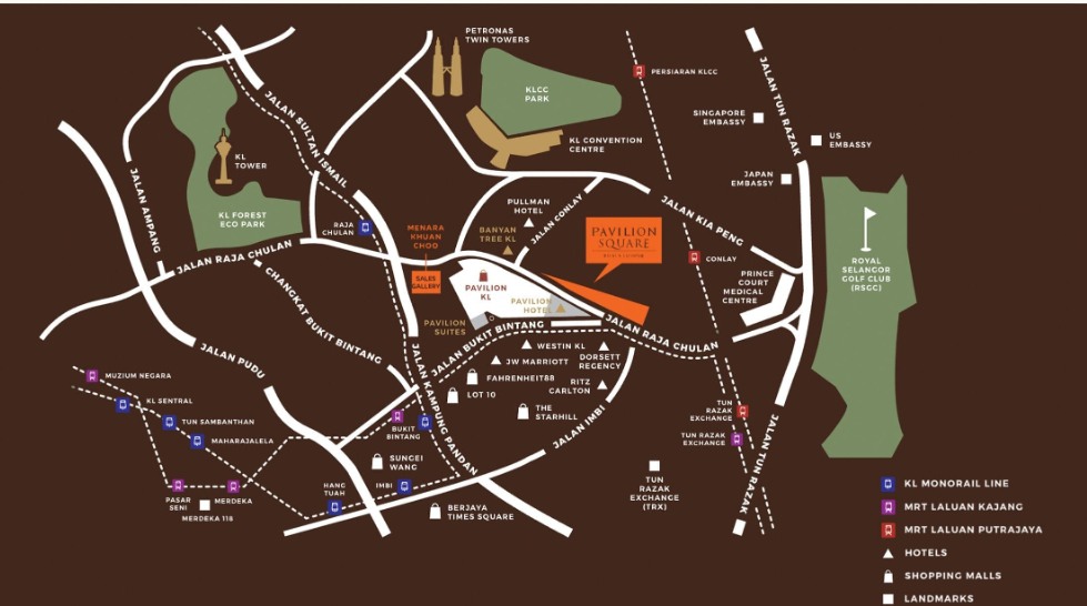 Nestled in Kuala Lumpur’s Golden Triangle, Pavilion Square offers:
